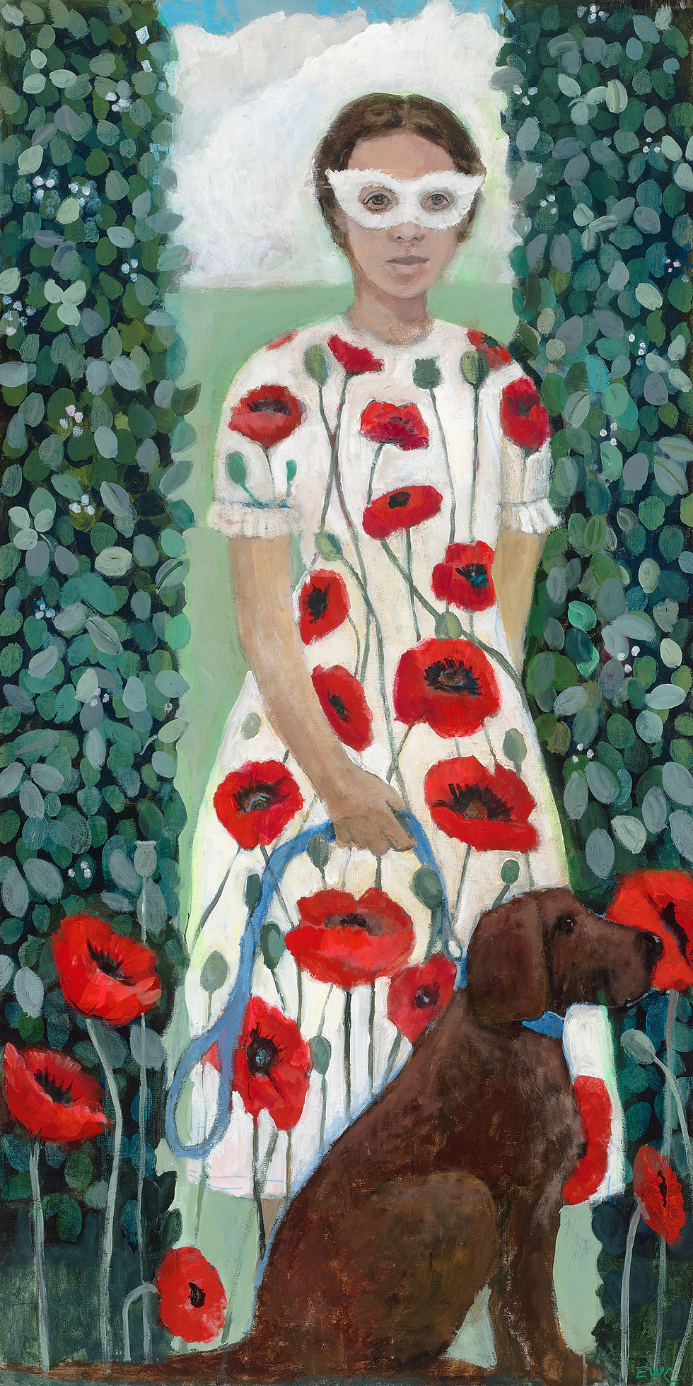 Erin Whitten Crysdale is a contemporary Canadian artist interested in themes that connect the natural world with the psyche of the individual. With a distinct style that merges naive outsider style with elements of representational and landscape painting, Erin's work blends a sense of beauty while also touching on the darkness that represents the whole experience of being a human. Remarkable for their bold compositions, colouration, and the intense gazes of her figures, her paintings express the human search for meaning in a world that can feel surreal. During the isolation of the Covid pandemic and this intense time of isolation, Erin's figures became more and more enveloped by nature, not as an expression of claustrophobia but as an expression of the increased intimacy with their natural surroundings.